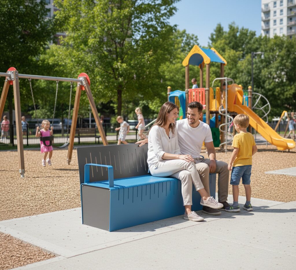 A modern minimalist lightweight seat perfect for both interior and exterior application